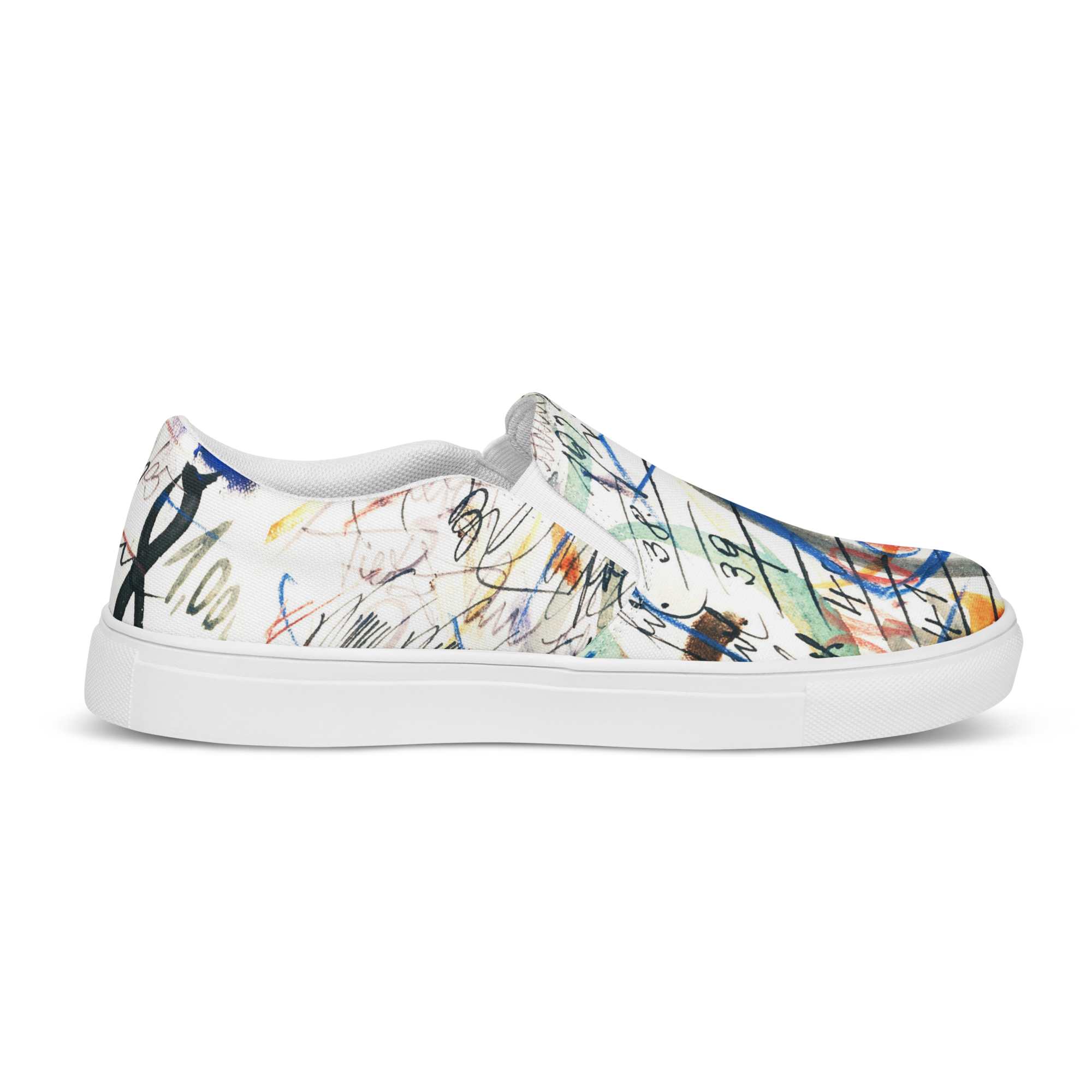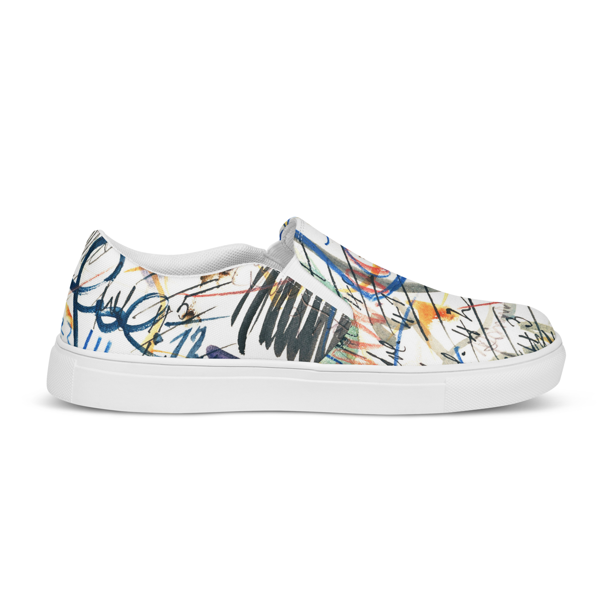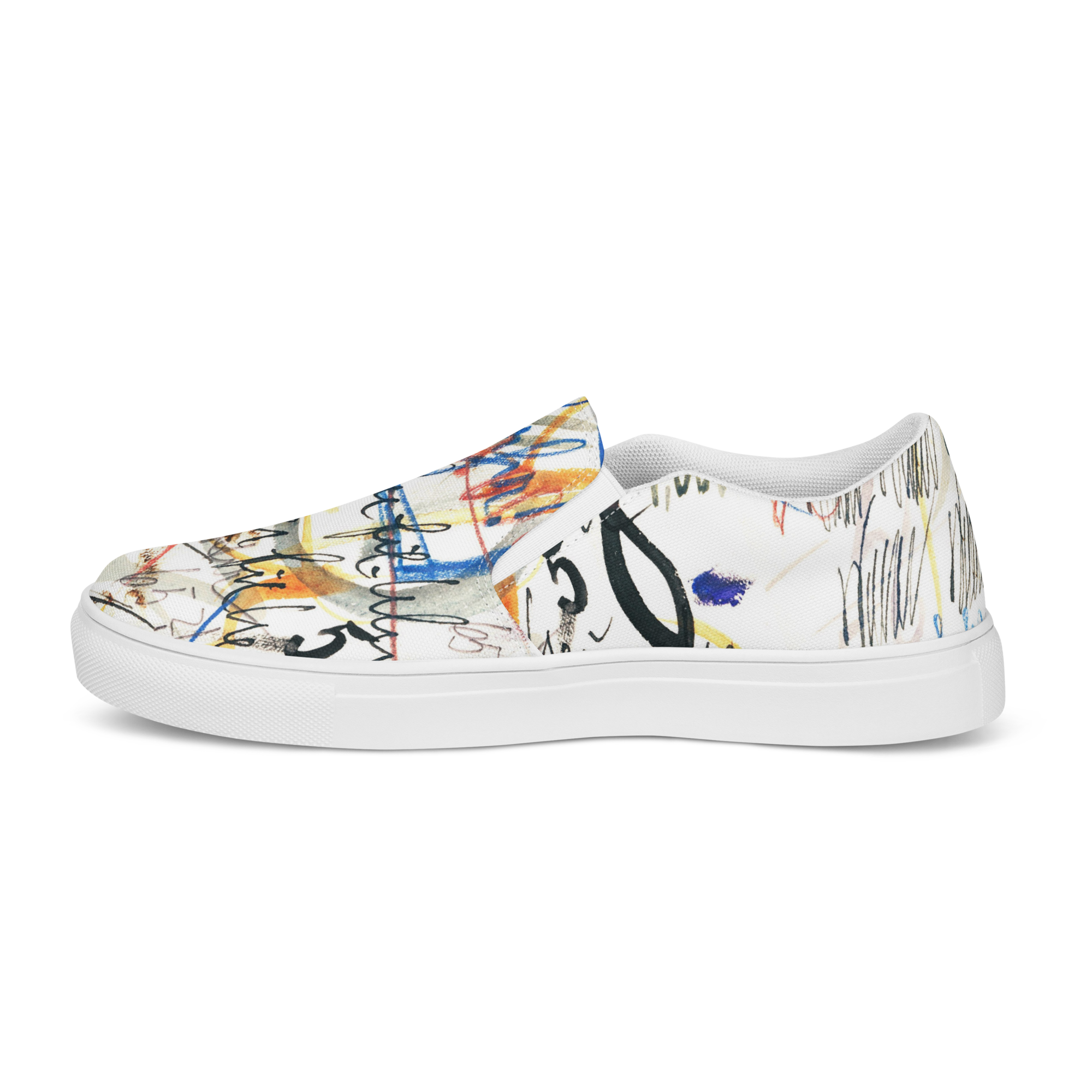 上質なキャンバス素材と絵画のデザインが見事に調和し、まるでアートを足元にまとっているかのような特別感を演出します。シンプルな装いにもさりげない華やかさをプラスし、日常の一瞬をアートで彩る特別な一足です。